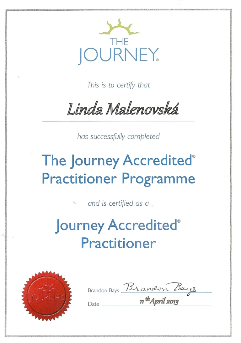 S metodou Cesta (The Journey) pracuji od roku 2011. Výcvik jsem zakončila v roce 2013 případovými studiemi. Každý rok také pomáhám jako trenér na živých nebo online seminářích Cesty s autorkou Brandon Bays.